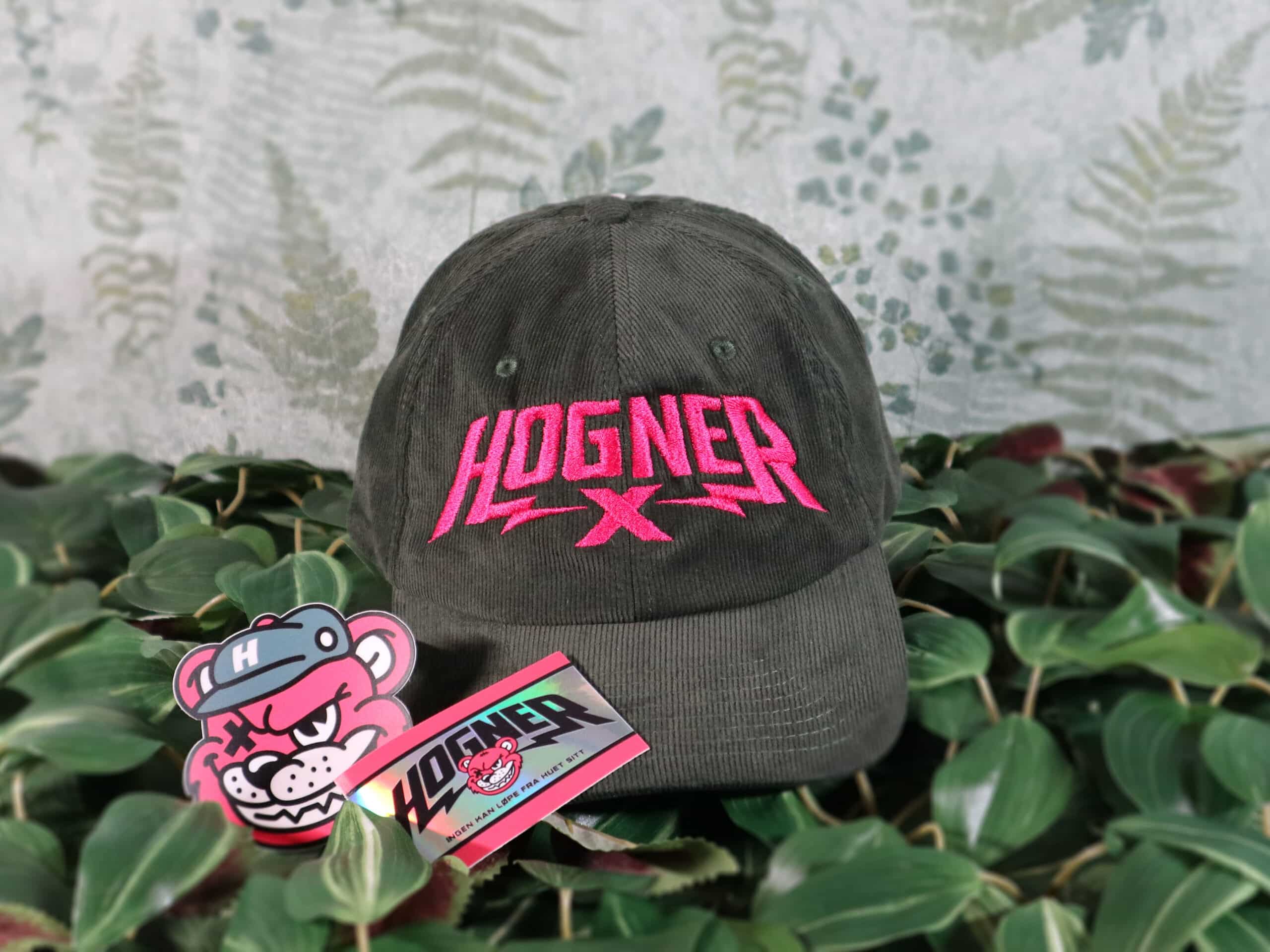 Gubbeaktig og leken baseballcap i skogsgrønn kordfløyel med brodert logo. Stickers inkludert.