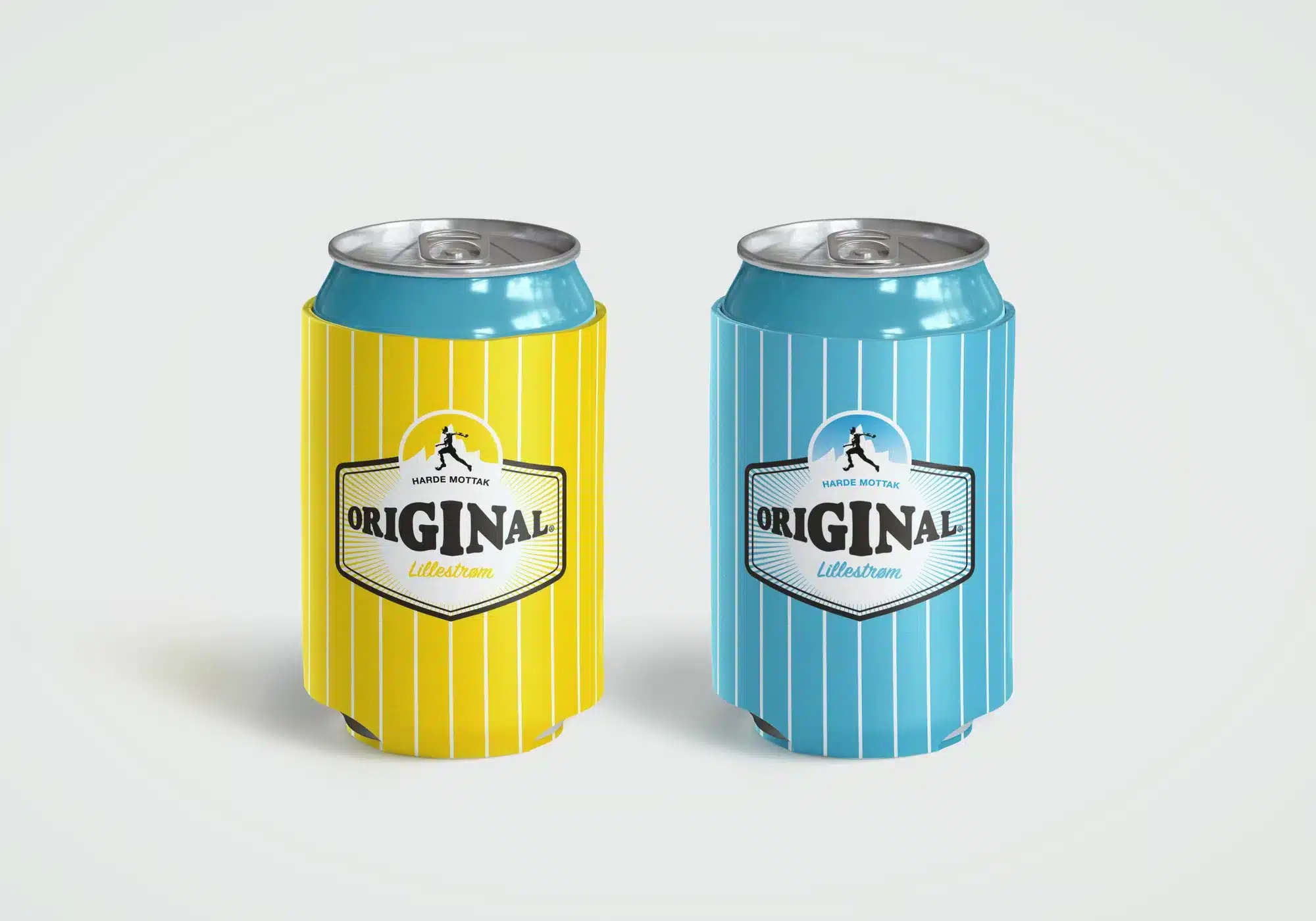 Hver pakning består av likt antall kanarigult og lyseblått kjøleskjørt. Passer aller best for 0,33 boks, men funker på 0,5 også da.